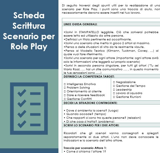 Scheda lancio per attività formativa di scrittura scenari per Role Play.