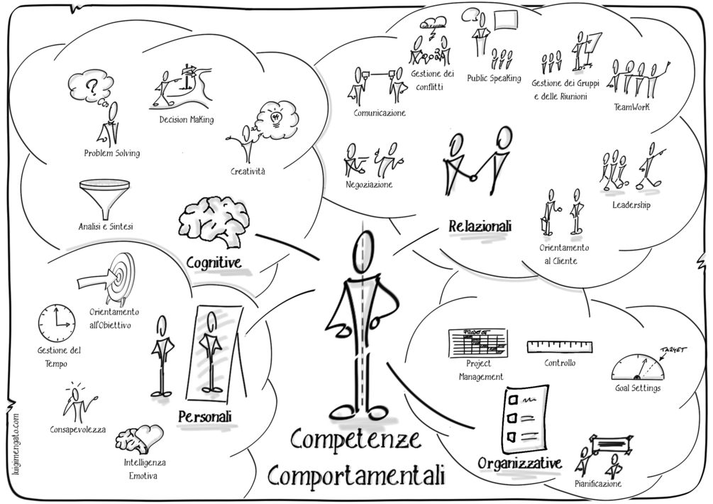 Mappa delle Competenze Comportamentali (Soft Skills) suddivise nelle famiglie Personali, Cognitive, Relazionali e Organizzative.